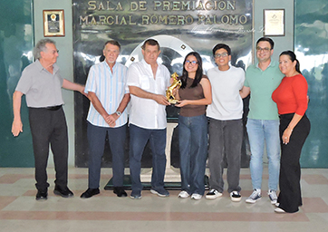 En el hipódromo samborondeño se cumplió con un homenaje al Ejército Ecuatoriano, correspondió al Crnel de E.M. Jorge Almeida premiar al entrenador Abelardo Escobar, en representación del propietario ganador Agustín Febres Cordero Rosales, con ellos el Dr. Jorge Pino.