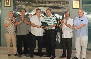 El homenajeado Carlos San Andrés premio a Tony Samán Salem pro el triunfo de Sabalenka, con ellos Vicente Novillo, Roberto Kronfle, Salomón Dumani y Giancarlo Malnati