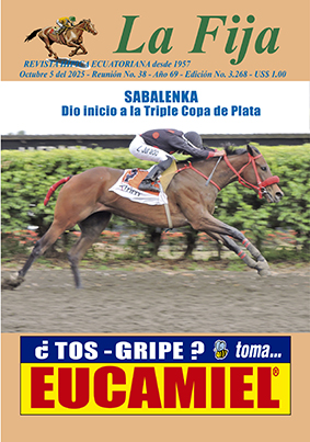 SABALENKA (Ecu-2022) hembra castaña por Golden Itiz y Sabatina (Precursor). Clásico “Carlos San Andrés Rivadeneira” Primera de la Copa de Plata. Cuarta victoria en 13 salidas. Jinete: Luis Jurado (Ecu); Preparador: Pedro Maquilón (Ecu); Stud: El Ocho. Haras: Don Miguel. Distancia: 1.100 metros. Tiempo: 1.09.13.