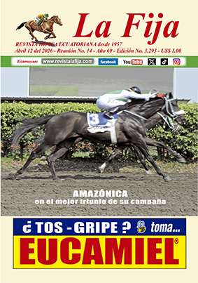 AMAZÓNICA (Ecu-2023) hembra castaña por Bay of Plenty y Bámbola (Belong to Me). Clásico “Eduardo Jairala Vallazza”. Cuarta victoria en 9 salidas. Jinete: Manuel González Jr. (Ecu); Preparador: Armando Roncancio (Col); Stud: Haras Don Miguel. Haras: Don Miguel. Distancia 1.400 metros. Tiempo: 1.29.97